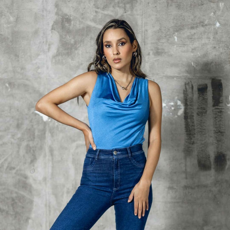 Esta elegante blusa con escote volcado es la pieza perfecta para quienes buscan un look sofisticado y femenino, El diseño destaca por su escote volcado, que cae suavemente sobre el busto, creando un efecto envolvente que realza el cuello y el escote de manera sutil pero seductora. Este detalle drapeado añade un toque de movimiento y elegancia al conjunto.