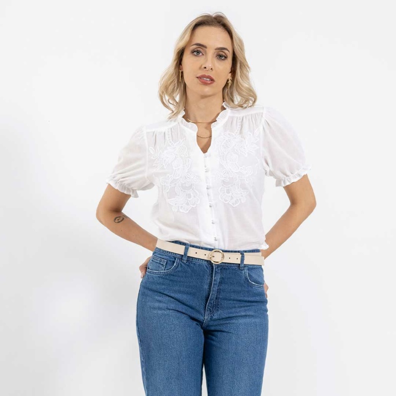La blusa es una prenda encantadora que combina elegancia y un toque de artesanía, Los bordados en la parte frontal son el elemento más llamativo de la blusa. Estos presentan patrones florales diseñado para ofrecer comodidad y un ajuste favorecedor.