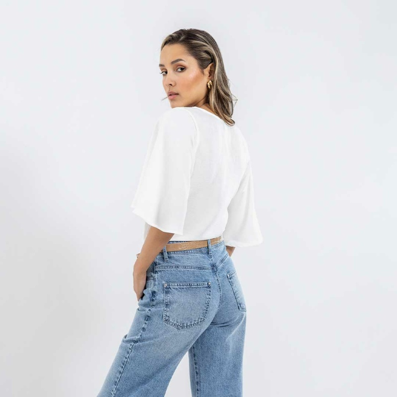 Esta blusa de color marfil irradia elegancia y sutileza, perfecta para quienes buscan una prenda versátil y sofisticada. El tono marfil, un blanco suave y cálido, aporta una luminosidad atemporal que combina fácilmente con cualquier estilo, desde lo casual hasta lo formal.