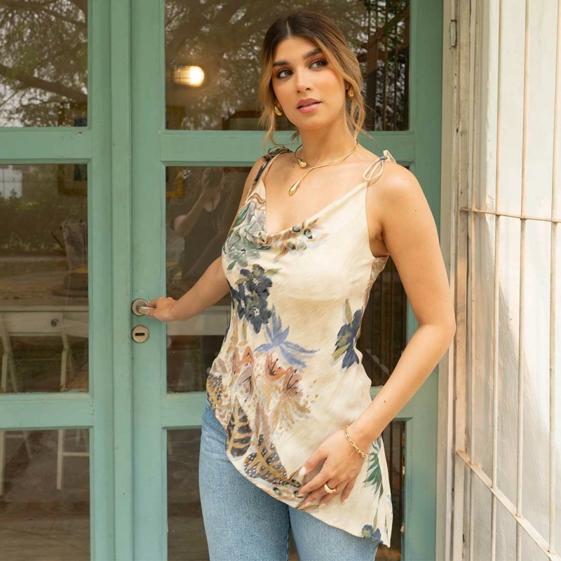La blusa solera color marfil estampada es una prenda fresca y ligera, perfecta para diversas ocasiones. Su diseño atractivo y moderno la convierte en una opción ideal para el uso diario