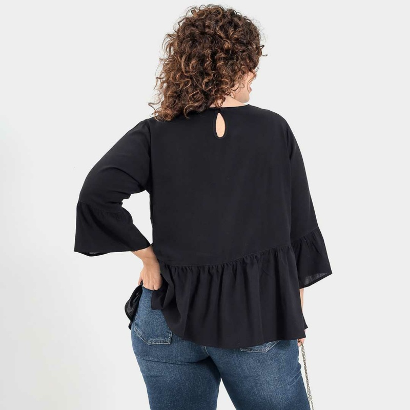 Descubre la elegancia y la versatilidad de nuestra blusa de manga tres cuartos en un sofisticado color negro. Diseñada para realzar cualquier atuendo, esta prenda es perfecta tanto para el día a día como para ocasiones especiales.