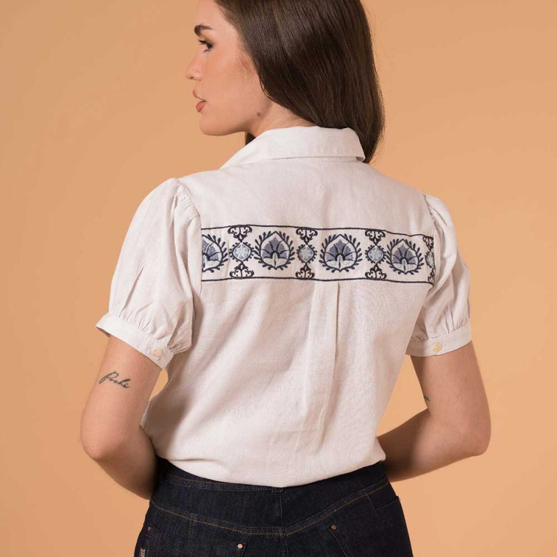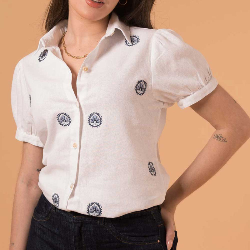 Camisa Bordada Mangas Cortas