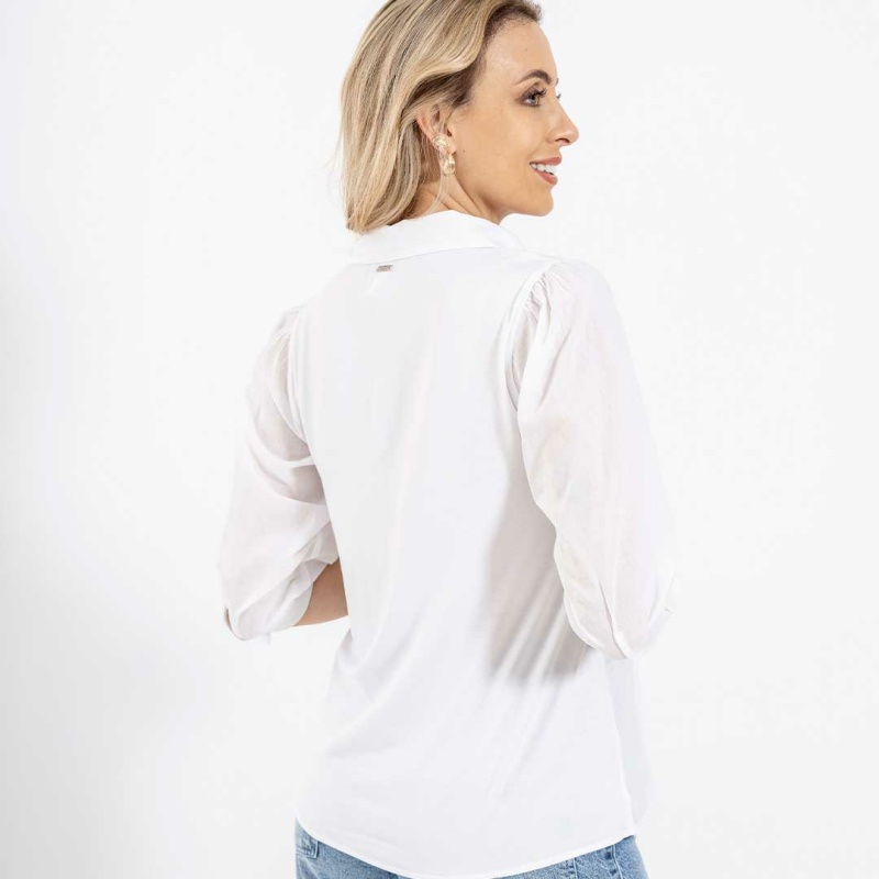 La camisa combinada color blanco es una prenda elegante y versátil, ideal para diversas ocasiones, desde eventos formales hasta salidas casuales. Su diseño con mangas 3/4 añade un toque moderno y sofisticado. Su diseño sencillo y funcional la convierte en una opción perfecta para el uso diario, permitiendo crear looks desde lo casual hasta lo más elegante.