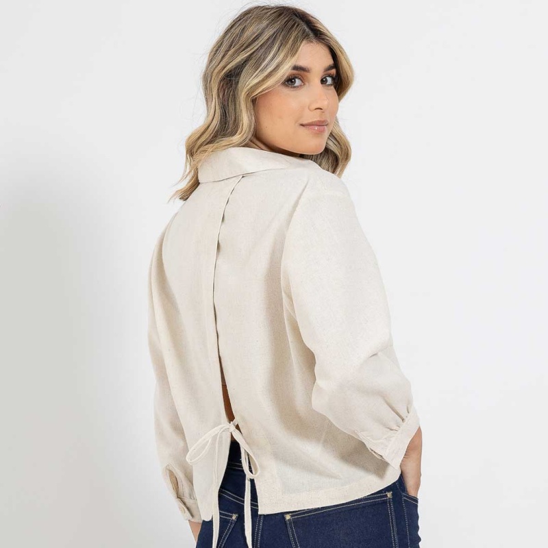 Camisa Cropped De Lino Espalda Abierta