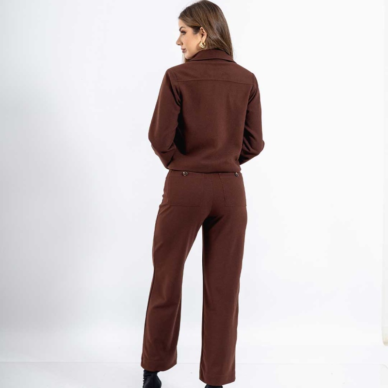 El pantal贸n tiene un corte de pierna recta, ligeramente ancho, lo que proporciona comodidad y una apariencia sofisticada. con un cierre de cremallera oculto en la parte frontal.