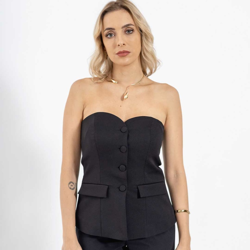 El corset de sastre es una prenda sofisticada que combina elegancia y modernidad, ideal para acentuar la figura femenina. Este corset es ideal para ocasiones especiales, como eventos formales o noches elegantes, pero también puede ser utilizado para elevar un look diario.