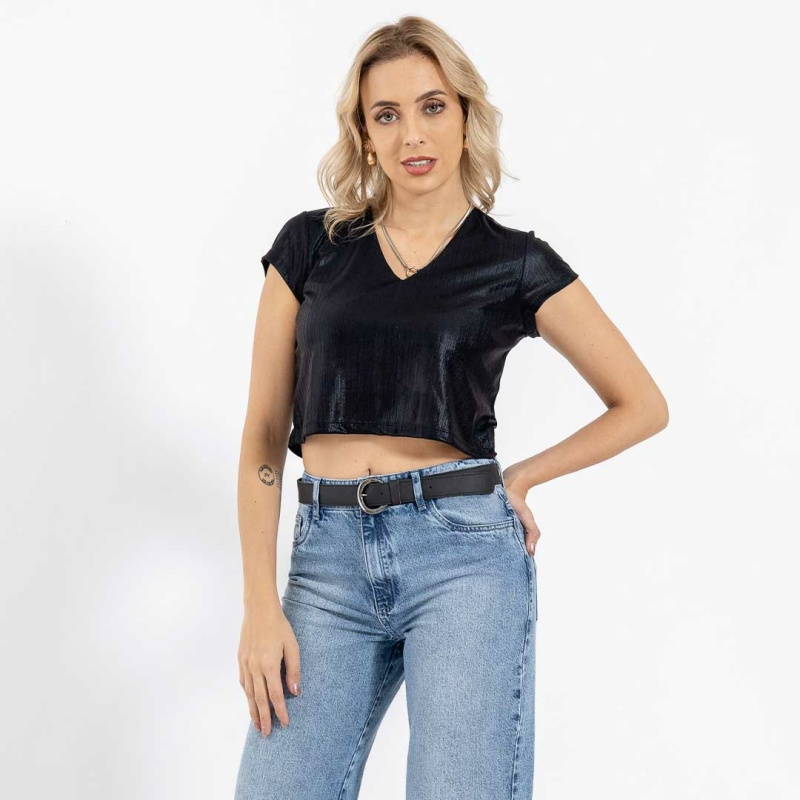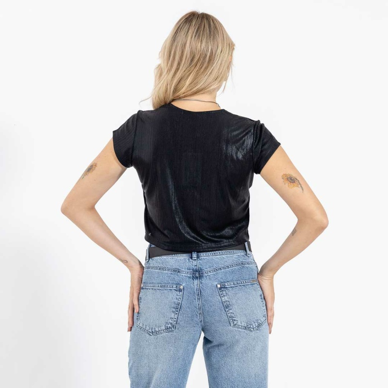 Este crop top negro es un básico imprescindible en cualquier guardarropa moderno. Su diseño elegante y minimalista se adapta fácilmente a diferentes estilos, permitiéndote crear looks versátiles para cualquier ocasión.
