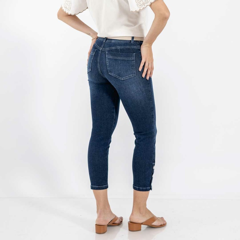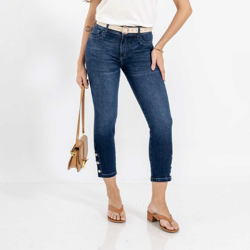 2% Elastano: Proporciona flexibilidad, permitiendo que el cropped jeans se ajuste cómodamente al cuerpo sin restringir el movimiento.