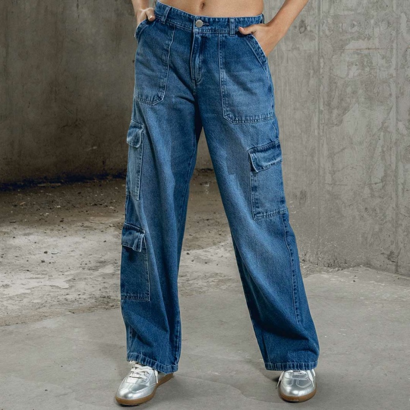El color denim es un cl谩sico en la moda, caracterizado por su tono azul medio a oscuro con un acabado ligeramente desgastado o envejecido. Este color ofrece versatilidad, permitiendo combinar el jeans cargo con una amplia gama de colores y estilos de ropa.