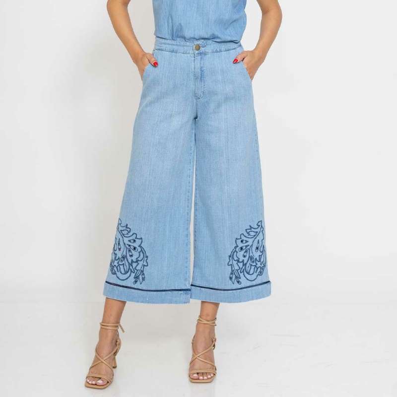 Pantalon Jeans Ancho C/Bordado Cod. 1240432