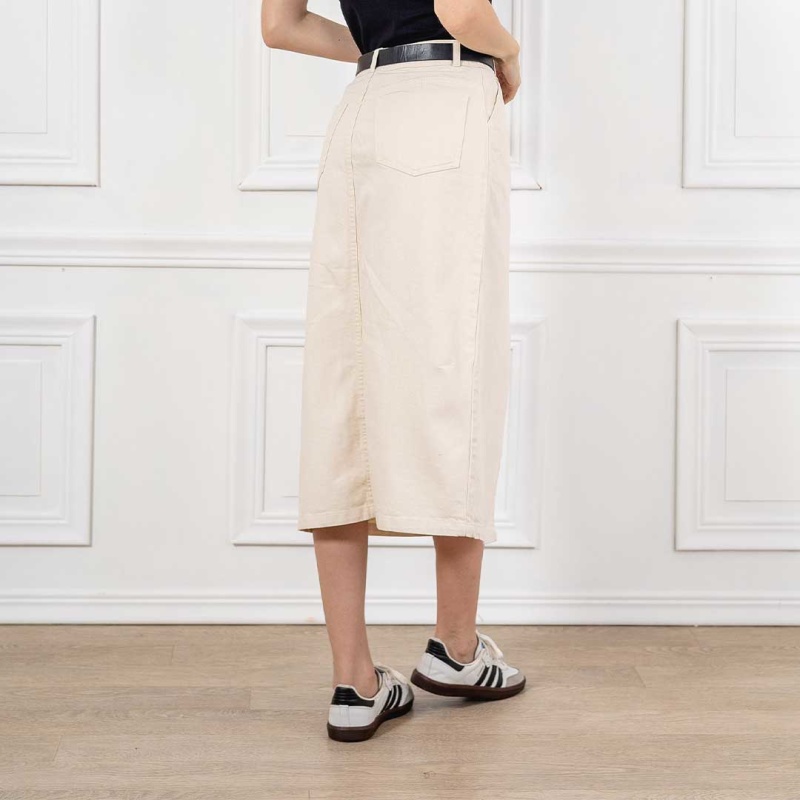 Esta elegante pollera larga de lino combina sofisticación con la ligereza del lino, creando una prenda ideal para climas cálidos y eventos especiales, presenta un tajo en la parte frontal que añade un elemento de diseño distintivo. Este tajo proporciona una abertura elegante que permite mayor libertad de movimiento y un toque de sensualidad, sin sacrificar la sofisticación.